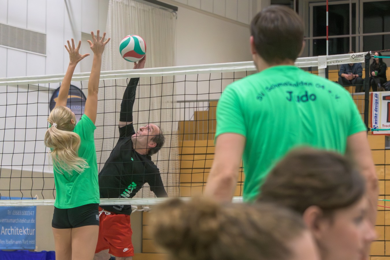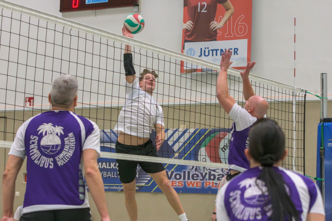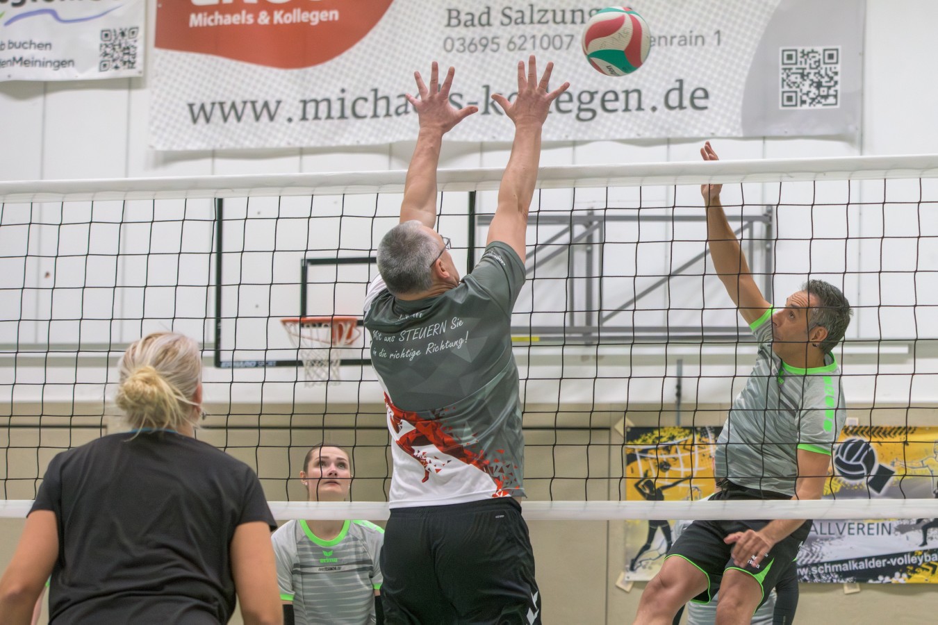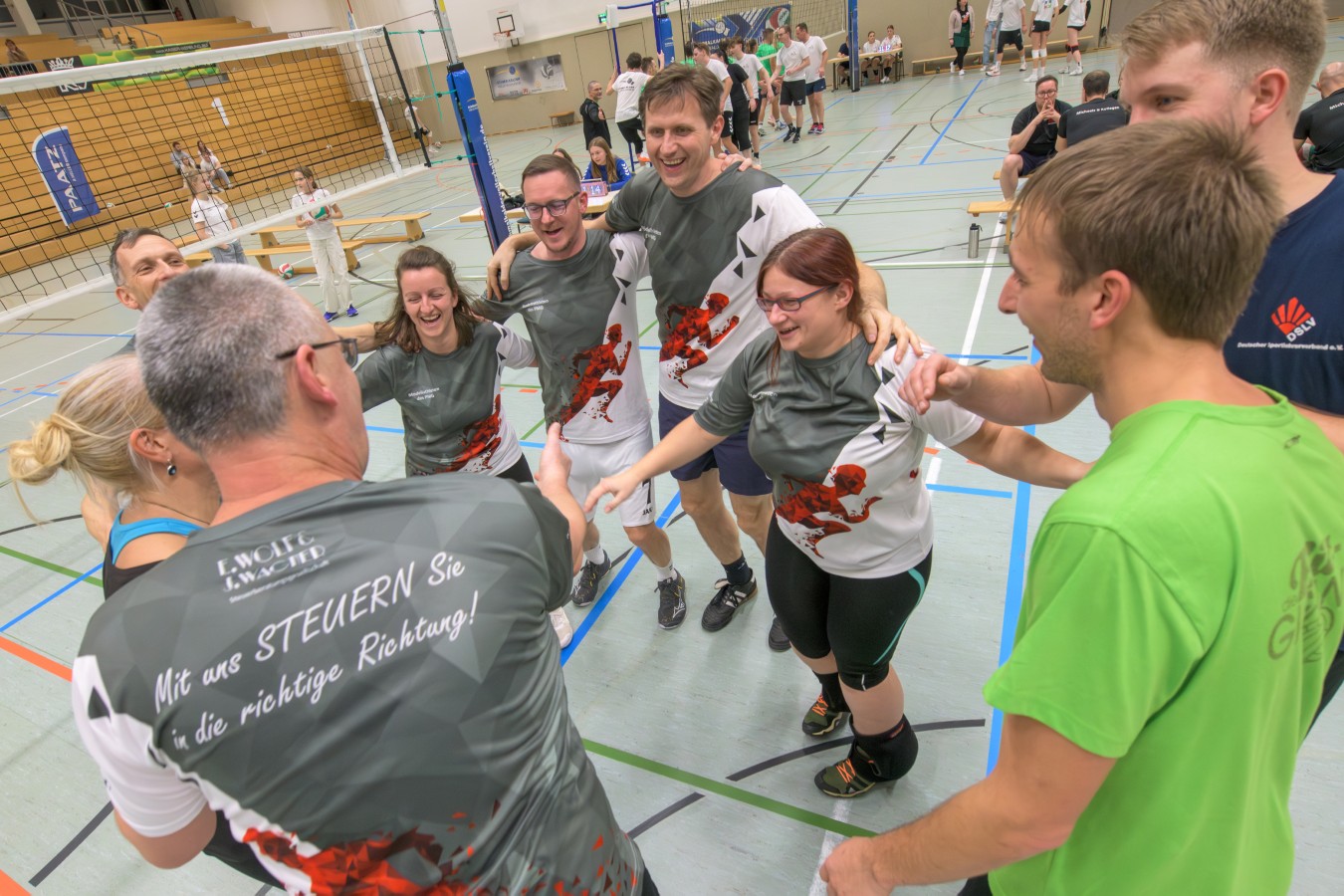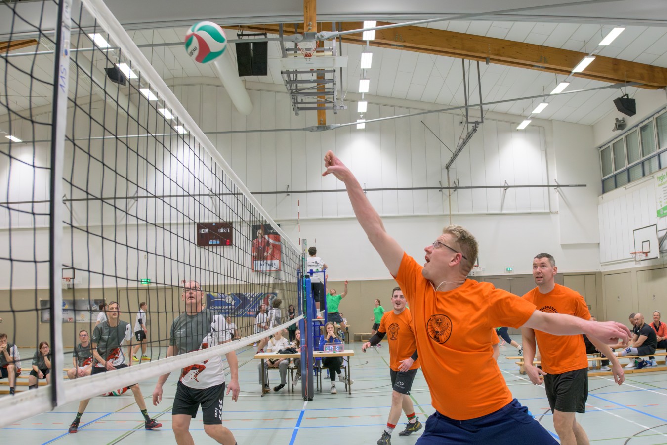 „Das Ziel lautet: Spaß haben“, fasste FSV-Fußballer Fiete Müller das Motto des Abends, aber eigentlich des gesamten Wochenendes zusammen. Nach herzlichen Worten der Begrüßung vom Micha Henke, Christian Stückrad (Präsident des Thüringer Volleyball-Verbandes), Schmalkaldens Bürgermeister Thomas Kaminski und Landrätin Peggy Greiser, ein paar Gastgeschenken für den Schmalkalder VV sowie einem kleinen Weihnachtsständchen aller Anwesenden ging es in vier Staffeln zu je drei Teams ans Netz, wo sich so mancher durchaus ehrgeizig zeigte. „Wir sind hier nicht angetreten, um Letzter zu werden. Das wurden wir früher oft genug“, zeigte sich Mario Liebaug vom Fußball-Schiedsrichterteam des KFA Rhön-Rennsteig ambitioniert. Am Ende erreichten sie immerhin Platz drei.