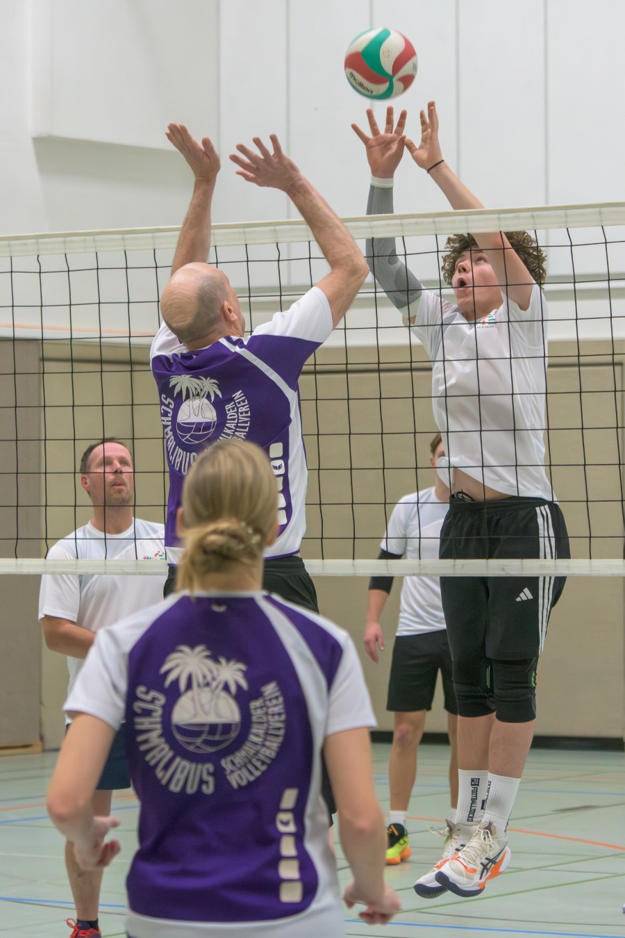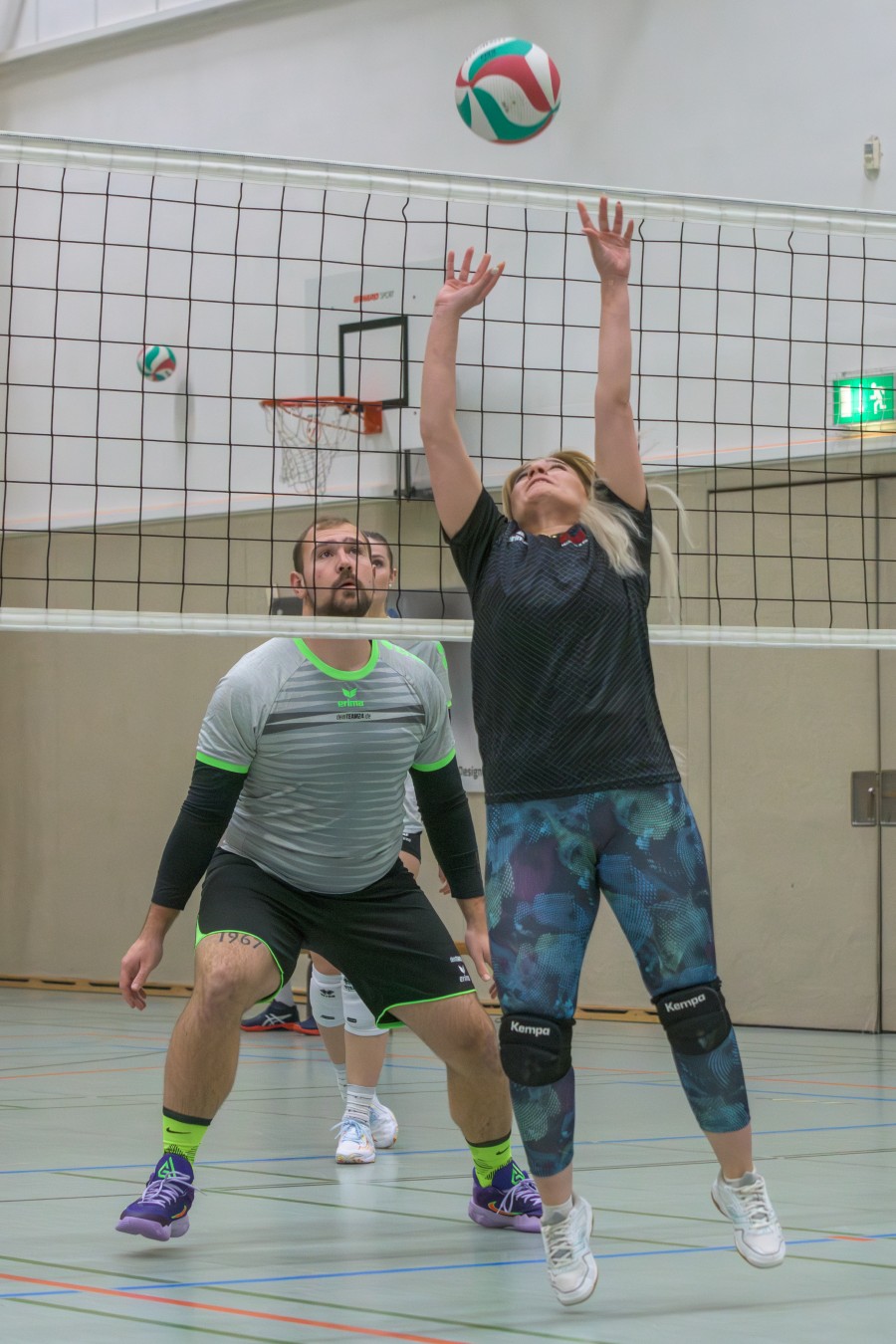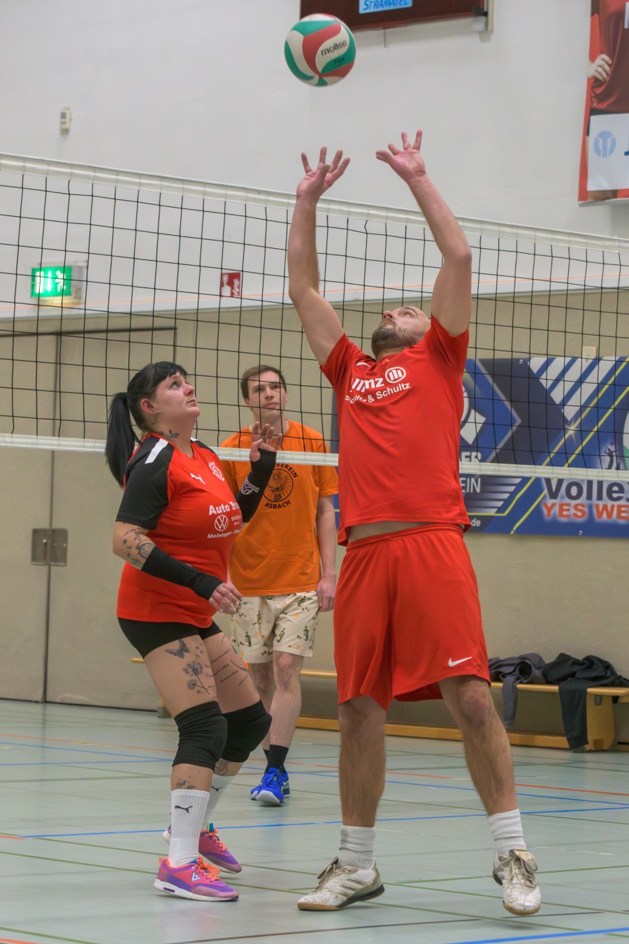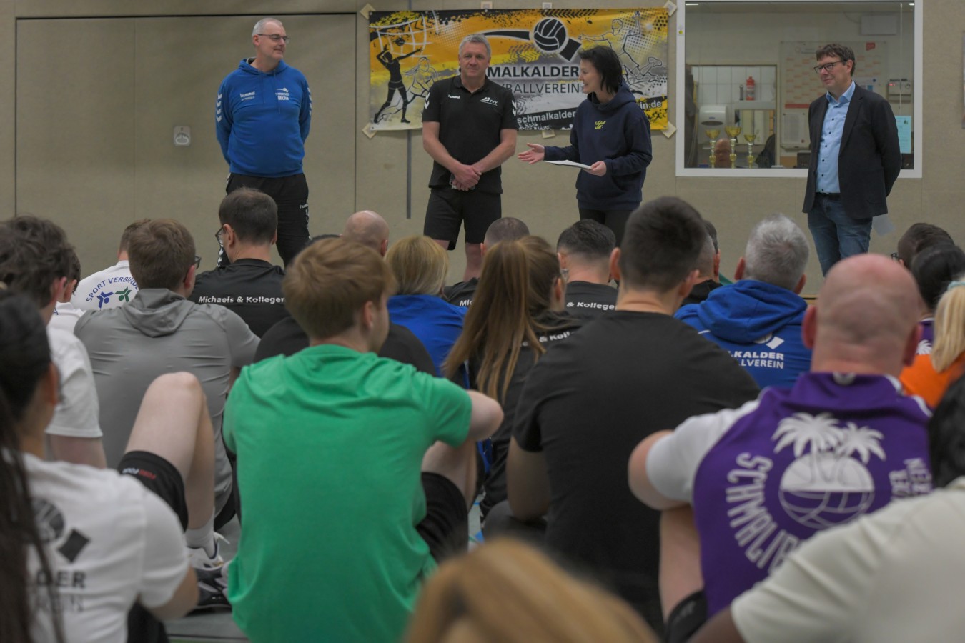 „Das Ziel lautet: Spaß haben“, fasste FSV-Fußballer Fiete Müller das Motto des Abends, aber eigentlich des gesamten Wochenendes zusammen. Nach herzlichen Worten der Begrüßung vom Micha Henke, Christian Stückrad (Präsident des Thüringer Volleyball-Verbandes), Schmalkaldens Bürgermeister Thomas Kaminski und Landrätin Peggy Greiser, ein paar Gastgeschenken für den Schmalkalder VV sowie einem kleinen Weihnachtsständchen aller Anwesenden ging es in vier Staffeln zu je drei Teams ans Netz, wo sich so mancher durchaus ehrgeizig zeigte. „Wir sind hier nicht angetreten, um Letzter zu werden. Das wurden wir früher oft genug“, zeigte sich Mario Liebaug vom Fußball-Schiedsrichterteam des KFA Rhön-Rennsteig ambitioniert. Am Ende erreichten sie immerhin Platz drei.