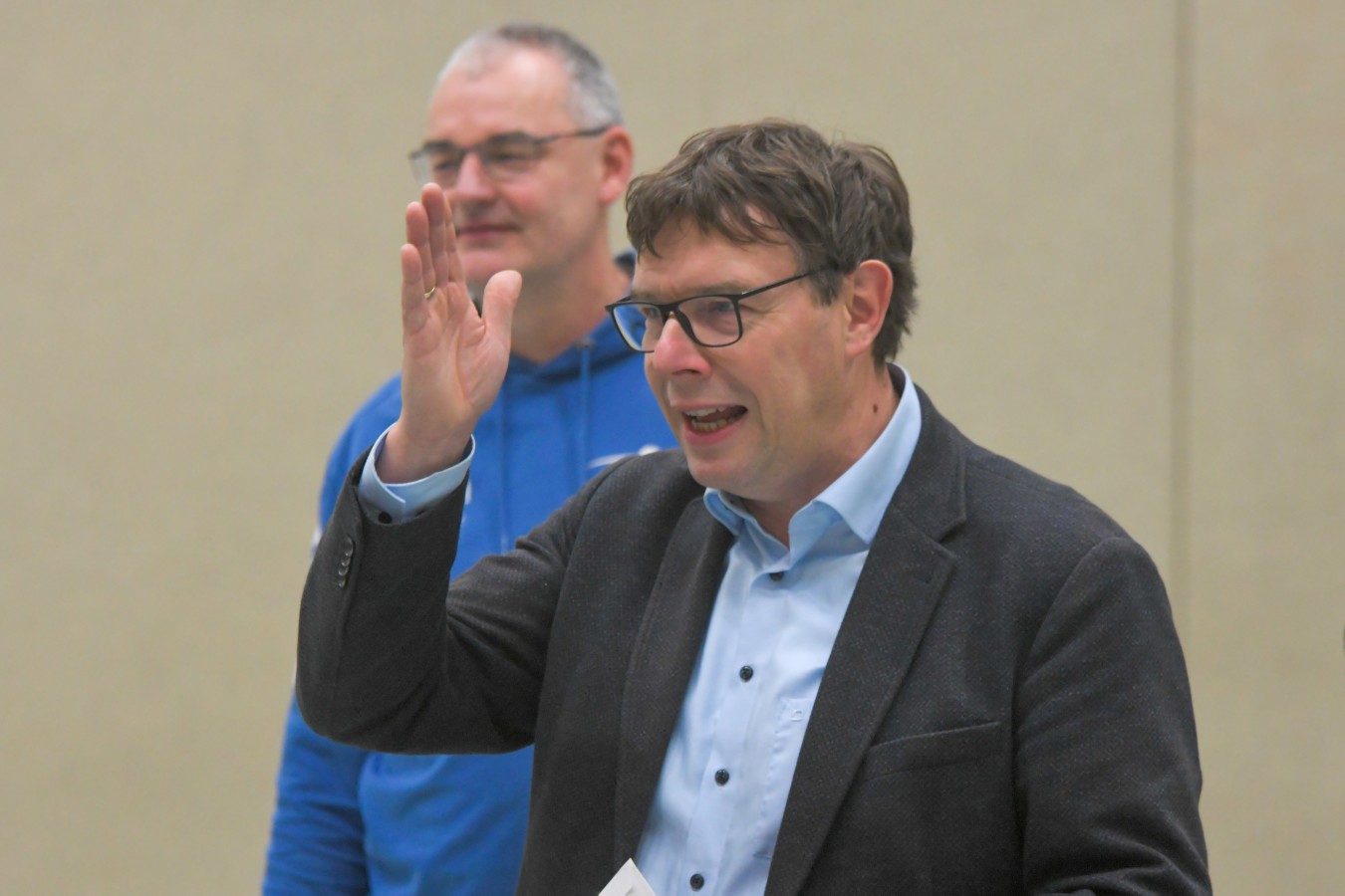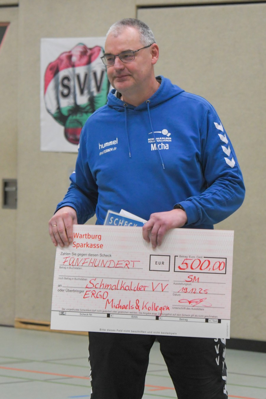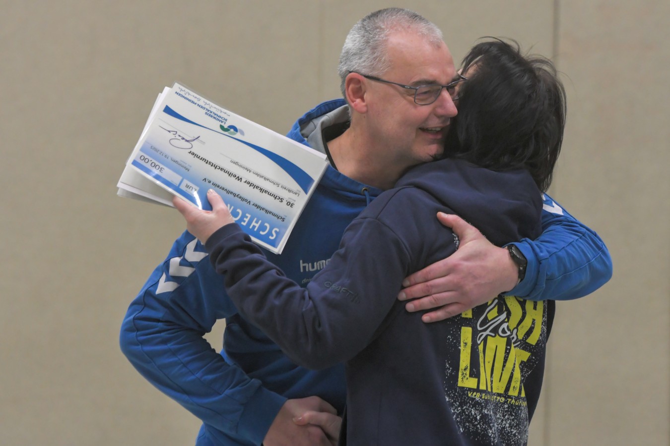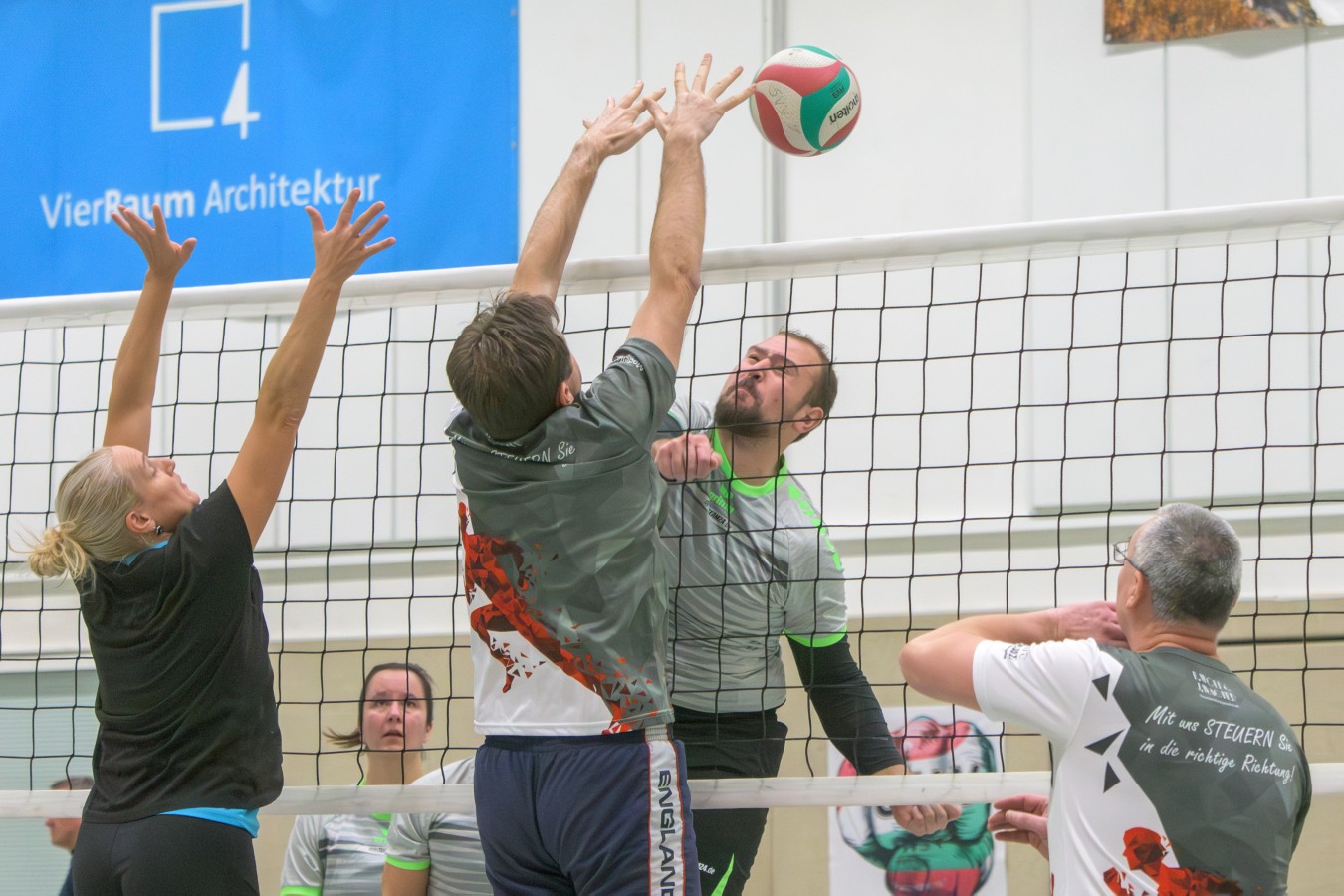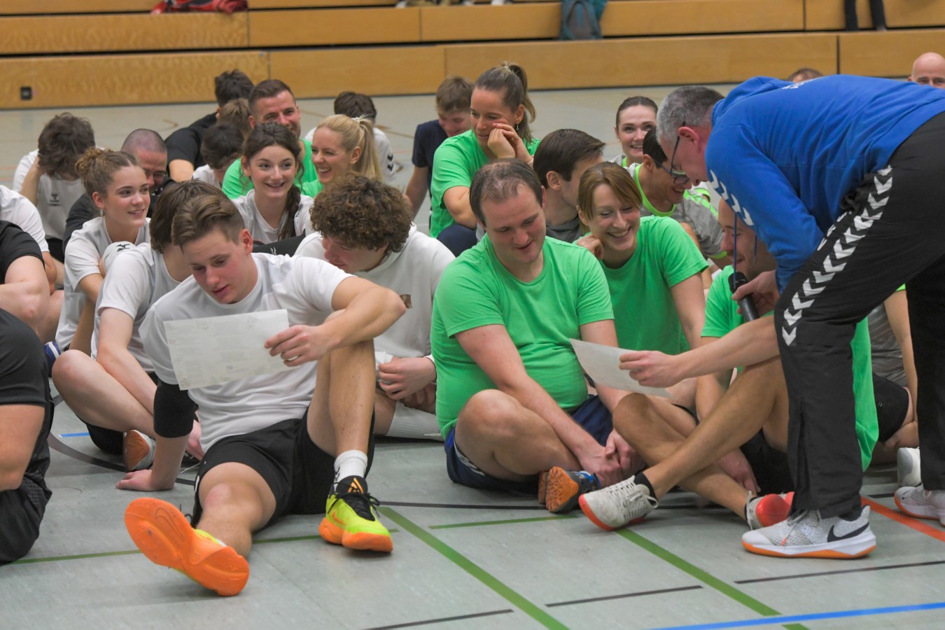 „Das Ziel lautet: Spaß haben“, fasste FSV-Fußballer Fiete Müller das Motto des Abends, aber eigentlich des gesamten Wochenendes zusammen. Nach herzlichen Worten der Begrüßung vom Micha Henke, Christian Stückrad (Präsident des Thüringer Volleyball-Verbandes), Schmalkaldens Bürgermeister Thomas Kaminski und Landrätin Peggy Greiser, ein paar Gastgeschenken für den Schmalkalder VV sowie einem kleinen Weihnachtsständchen aller Anwesenden ging es in vier Staffeln zu je drei Teams ans Netz, wo sich so mancher durchaus ehrgeizig zeigte. „Wir sind hier nicht angetreten, um Letzter zu werden. Das wurden wir früher oft genug“, zeigte sich Mario Liebaug vom Fußball-Schiedsrichterteam des KFA Rhön-Rennsteig ambitioniert. Am Ende erreichten sie immerhin Platz drei.