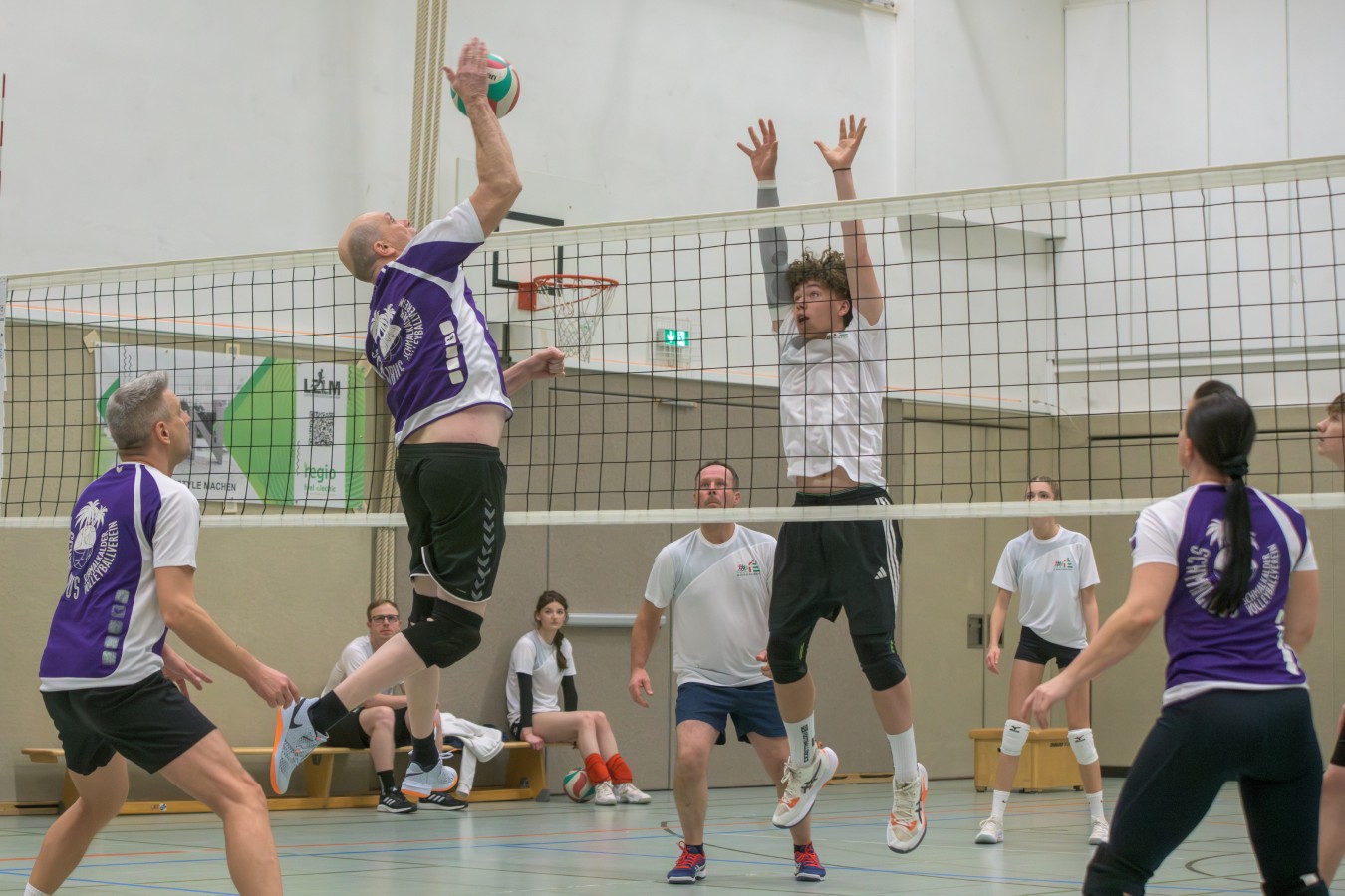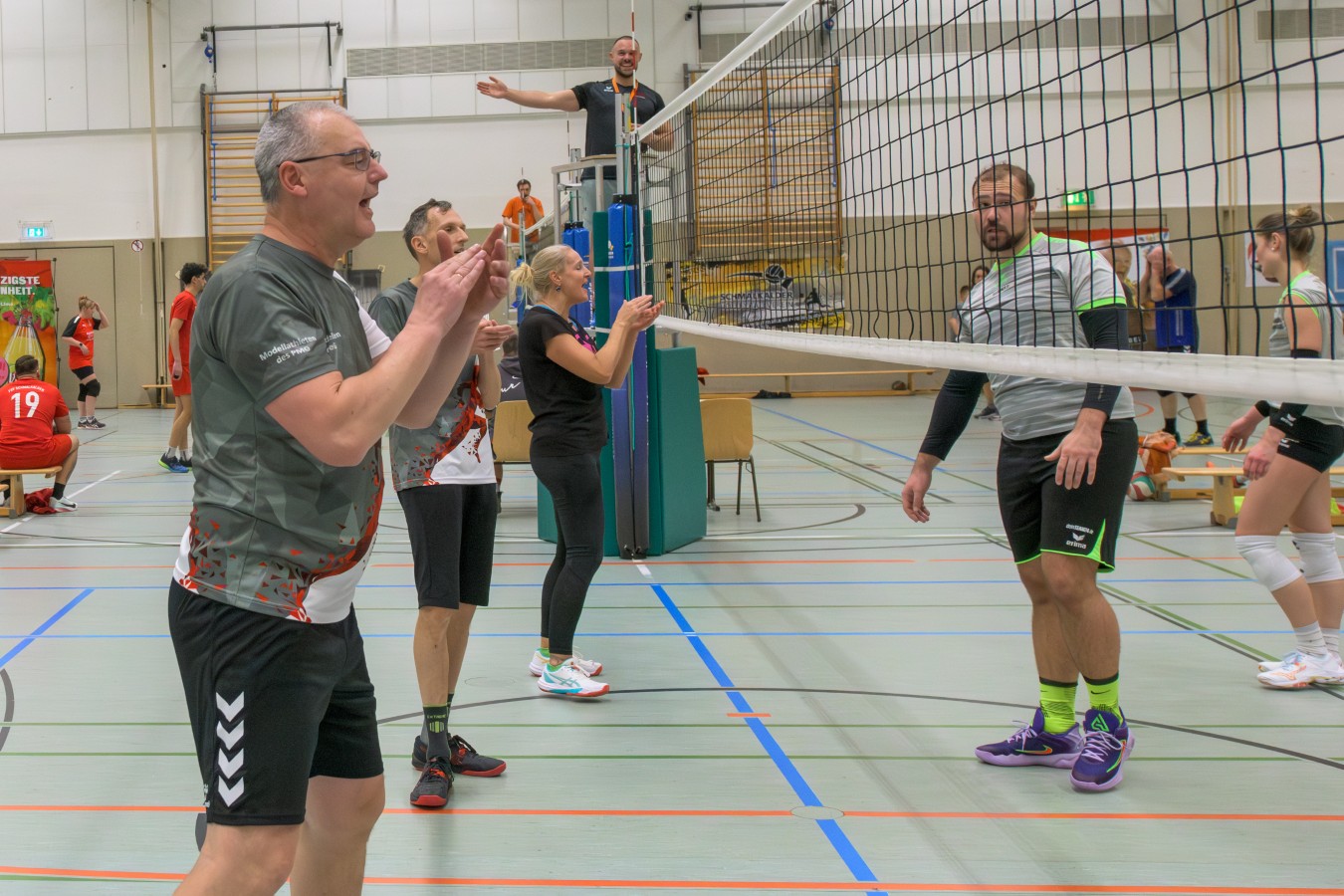 Unter die Zuschauer hatte sich am Freitagabend auch Volleyball-Weltmeister Kurt Zimmermann gemischt. Mit dem WM-Titel 1970 und der Olympia-Silbermedaille 1972 hatte er mit der DDR-Nationalmannschaft einst für einen Volleyball-Hype in der DDR gesorgt. In der Mehrzweckhalle genoss er die Stimmung und das sportliche Miteinander.