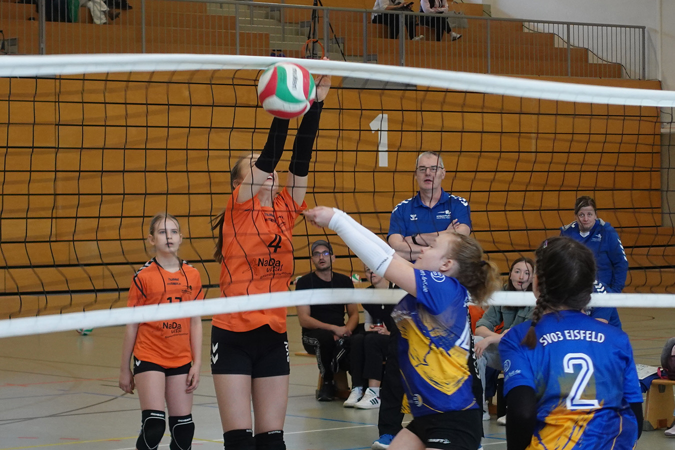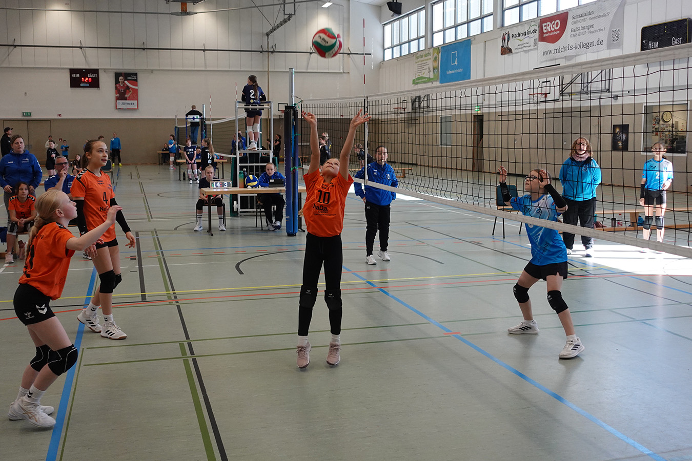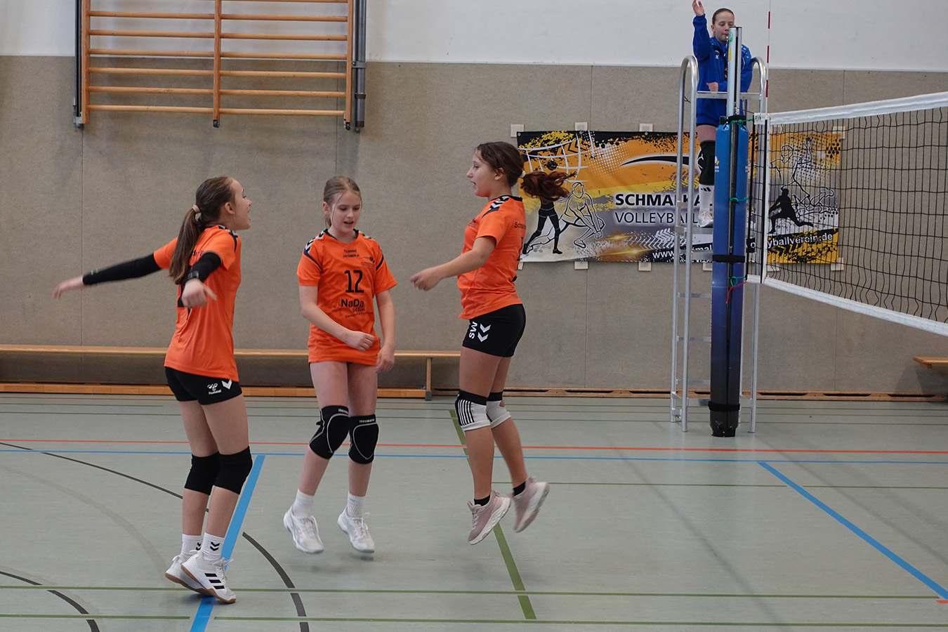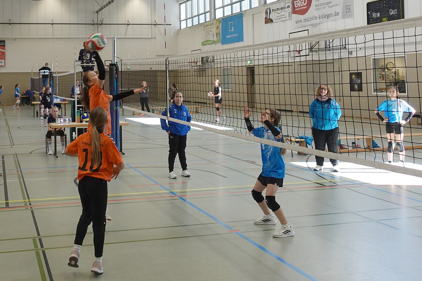 In der Vorrundengruppe starteten die Gastgeberinnen dennoch vielversprechend. Gegen SG Erfurt electronic I gelang ein souveräner 2:0-Erfolg. Im zweiten Spiel gegen Eisfeld I mussten sich die Schmalkalderinnen jedoch deutlich geschlagen geben. Damit wurde das dritte Gruppenspiel gegen Suhl zum entscheidenden Duell um den Halbfinaleinzug. Hochmotiviert starteten die Gastgeberinnen und entschieden den ersten Satz klar mit 15:8 für sich. Doch im zweiten Durchgang riss der Faden. Unsicherheiten bei Aufschlag und Annahme führten zu einem deutlichen 5:15. Im entscheidenden Tiebreak, in der U13 bis 10 Punkte gespielt, lagen die Schmalkalderinnen lange vorn, ehe erneut die Nerven versagten. Mit 10:12 ging der Satz und damit auch die Halbfinalchance denkbar knapp verloren.