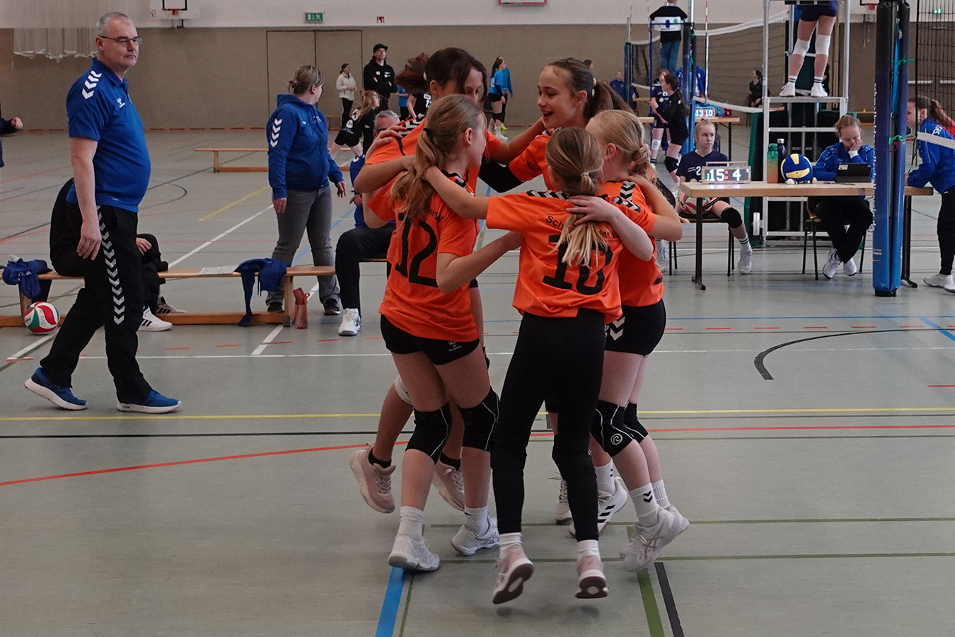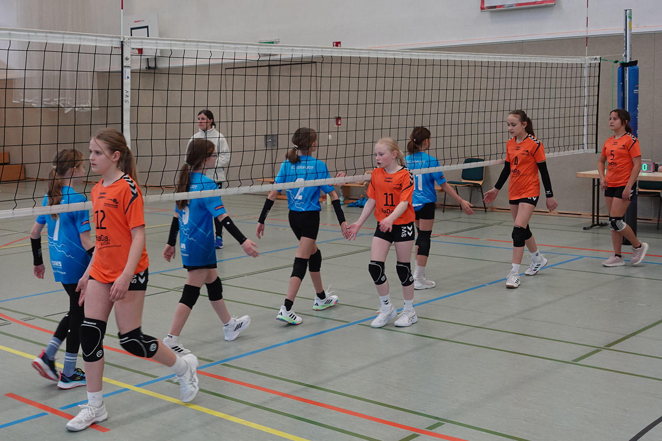 Im anschließenden Überkreuzspiel gegen Sonneberg II lieferten sich die Mädchen ein weiteres dramatisches Duell, mussten sich jedoch in zwei engen Sätzen (13:15, 14:16) geschlagen geben. So blieb am Ende nur noch das Spiel um Platz sieben, erneut gegen einen bekannten Gegner aus der Vorrunde, Erfurt electronic II. Was am Vormittag noch eine klare Angelegenheit gewesen war, entwickelte sich diesmal zu einer nervenaufreibenden Partie. Die Schmalkalderinnen fanden zunächst schwer ins Spiel, bewiesen jedoch Moral und setzten sich schließlich mit 16:14 und 15:7 durch. Damit sicherten sie sich Rang sieben bei der Landesmeisterschaft.