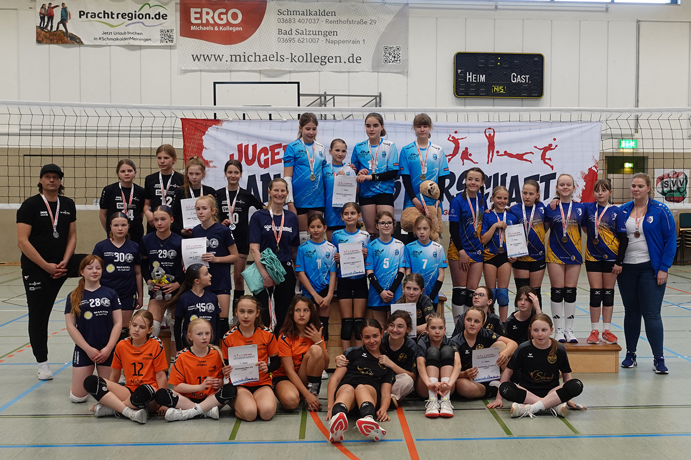 In der heimischen Mehrzweckhalle richtete die weibliche U13 des Schmalkalder VV die Finalrunde zur Thüringer Landesmeisterschaft aus. Acht Teams hatten sich zuvor über fünf Vorrunden qualifiziert. Die jeweils vier besten Mannschaften aus der Nord- und Südgruppe. Als Titelverteidiger gingen die Schmalkalder Mädchen mit großen Ambitionen ins Turnier. Doch bereits im Vorfeld mussten sie Rückschläge verkraften. Mit Lotte Schreiber fiel eine wichtige Spielerin verletzungsbedingt aus, zudem fehlte Kapitänin Pia Keller. Entsprechend gedämpft waren die Erwartungen vor heimischem Publikum.