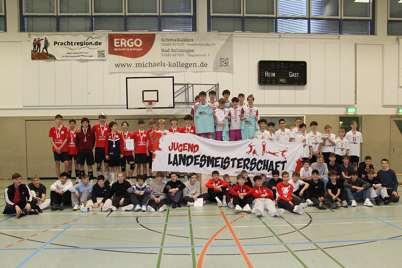 Großer Volleyballsport wurde am Wochenende in der Mehrzweckhalle geboten. Beim Heimfinale der Thüringer U16-Landesmeisterschaft erkämpften sich die Nachwuchsspieler des Schmalkalder VV nach einem durchwachsenen Turnierverlauf einen starken dritten Platz und durften sich am Ende über die Bronzemedaille freuen. Vor heimischem Publikum zeigten die Jungen Moral, Kampfgeist und Teamzusammenhalt und belohnten sich mit einem versöhnlichen Saisonabschluss. Für das prestigeträchtige Landesfinale hatten sich die besten sechs Teams Thüringens über insgesamt fünf Vorrunden qualifiziert.