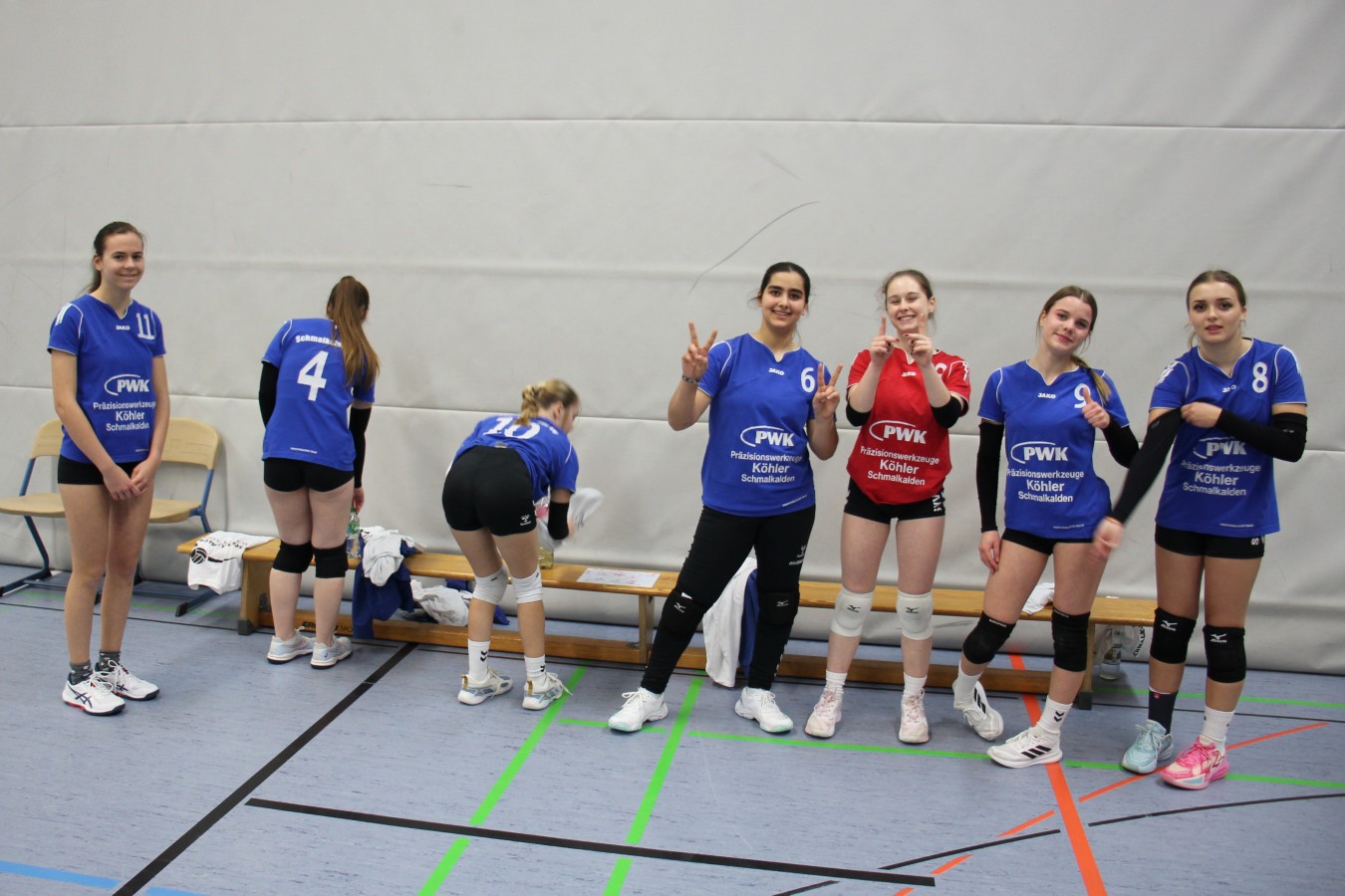 Aufstellung Schmalkalder VV II: Maya Grosse, Najah Hababa, Klara Höfer, Lena Hugk, Joana Pjetri, Klara Reich, Lina Scheler