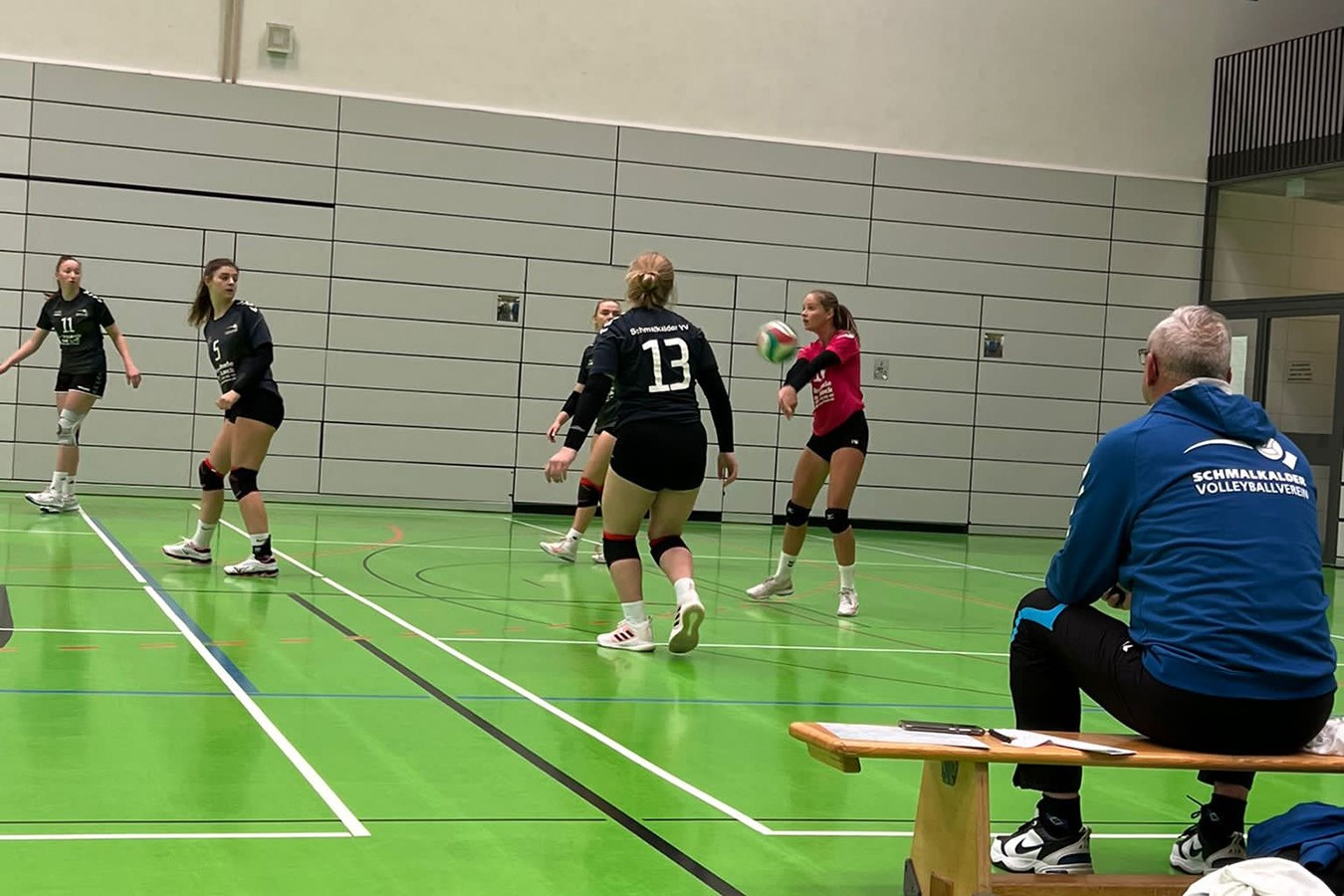 Die Schmalkalder Damen bestimmten die Partie gegen VV 70 Meiningen II von Beginn an. Druckvolle Aufschläge von Tabea Dreiack und Jaqueline Otto ließen die Gäste schnell auf 15:7 enteilen. Aufmerksam war die Feldabwehr, die immer wieder gekonnt die Angriffsbälle in die Vorderzone spielen konnte. Somit konnte Zuspielerin Elisabeth Luck variabel die Bälle an ihre Angreifer verteilen. Mit 25:15 ging der erste Durchgnag klar an Schmalkalden.
